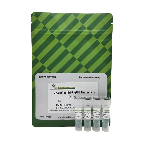 本产品是使用SYBR Green I 嵌合荧光法进行qPCR反应的专用预混液。核心组分Taq Polymerase是基于抗体法修饰的热启动聚合酶,具有特异性强、检测灵敏度高、扩增产量高等特点。配合特殊优化的buffer,可进行高特异性、高灵敏的qPCR扩增。本产品含有特殊的ROX,适配常用的qPCR仪器,无需在不同仪器上调整ROX的浓度。本产品是一款2×预混液,只需加入引物和模板即可进行扩增。